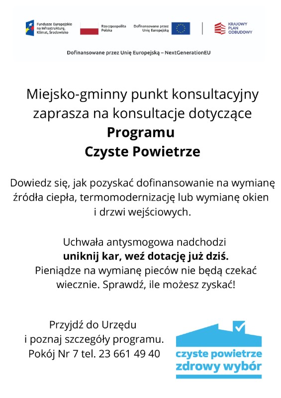 Zaproszenie na konsultacje dotyczące Programu "Czyste Powietrze"