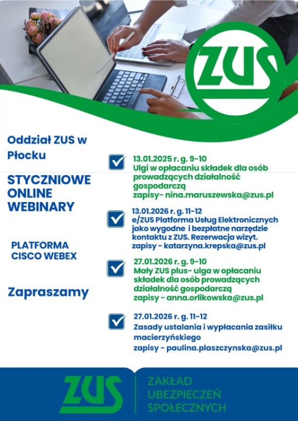 ZUS zaprasza na styczniowe szkolenia online