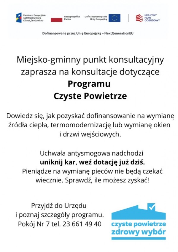 Zaproszenie na konsultacje dotyczące Programu "Czyste Powietrze"