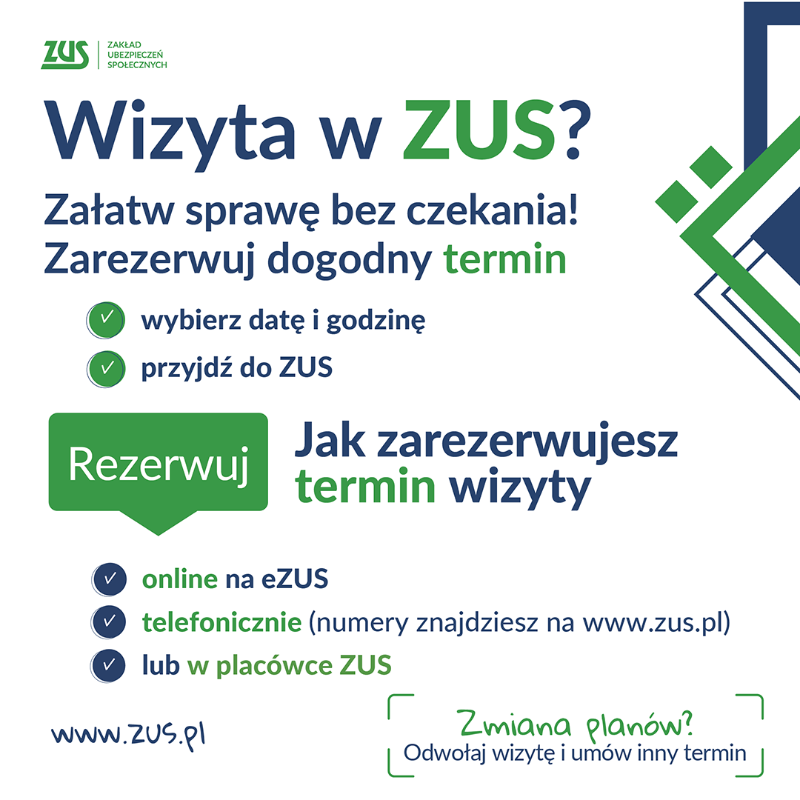 Źródło: www.zus.pl - Rezerwuj wizyty w Zakładzie Ubezpieczeń Społecznych i wygodnie załatwiaj swoje sprawy - ZUS